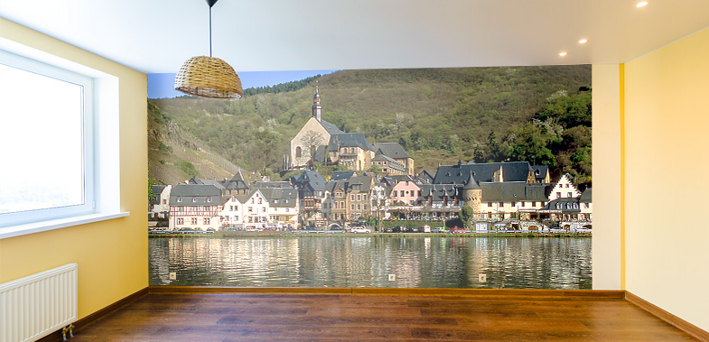 Die Abbildung zeigt ein Zimmer mit einer typischen Fototapete (Foto: alexanderkonsta und WernerHilpert / jeweils stock.adobe.com – ein Symbolbild)