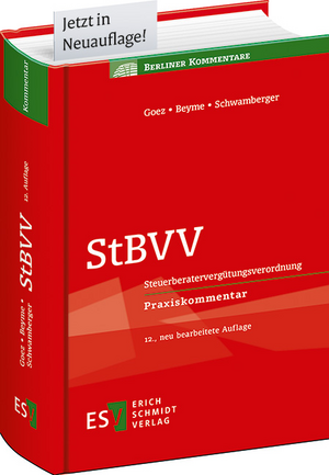 | StBVV von Simon Beyme, Dr. Christoph Goez, Dipl.-Finanzwirt Walter Jost, Gerald Schwamberger Der „Goez/Beyme/Schwamberger“ bringt Transparenz zu allen typischen Vergütungsfragen der Steuerberater. Neueste Entwicklungen greift die 12. Auflage dabei verlässlich auf, insbesondere die weitreichenden Änderungen durch die Fünfte Verordnung zur Änderung der StBVV und die Bürokratieentlastungsverordnung, aber auch zwischenzeitlich ergangene Rechtsprechung. Neben prägnanten Erläuterungen zur StBVV finden Sie viele nützliche Orientierungshilfen: